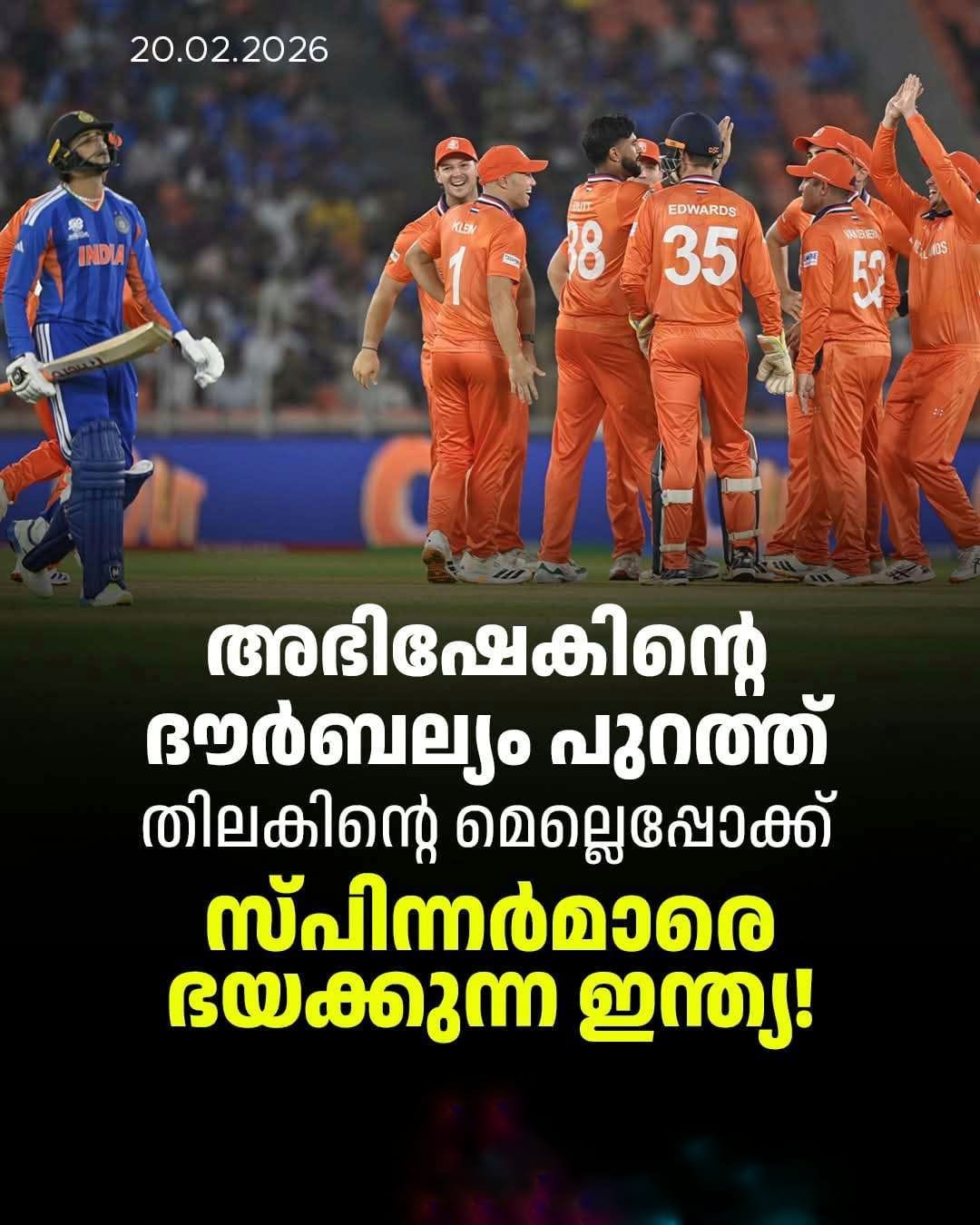 പേസും സ്പിന്നും ഒരുപോലെ അഭിഷേകിനെ പ്രതിസന്ധിയിലാക്കുന്നു. ആദ്യ മത്സരത്തിൽ പേസർക്ക് വിക്കറ്റ് നൽകിയ താരം, പിന്നീട് പാകിസ്താനും നെതർലൻഡ്സിനുമെതിരെ ഓഫ് സ്പിന്നർമാർക്ക് മുന്നിൽ പതറി. നമീബിയക്കെതിരെ കളിക്കാതിരുന്ന അഭിഷേകിന് ഇതുവരെ താളം കണ്ടെത്താനാകാത്തത് സൂപ്പർ 8-ലേക്ക് കടക്കുന്ന ഇന്ത്യക്ക് വലിയ തിരിച്ചടിയാണ്.