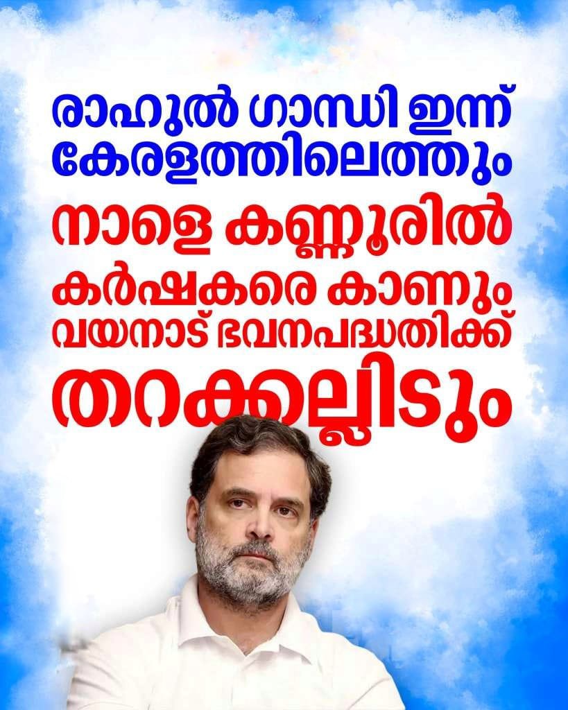 ഫെബ്രുവരി 26-ന് രാഹുൽ ഗാന്ധി കണ്ണൂരിൽ കർഷകരുമായി സംവദിക്കും. തുടർന്ന് വയനാട് മേപ്പാടിയിലെ കുന്നമ്പറ്റയിൽ ഉരുൾപൊട്ടൽ ദുരിതബാധിതർക്കായി കോൺഗ്രസ് നിർമ്മിക്കുന്ന ഭവനപദ്ധതിയുടെ ശിലാസ്ഥാപനം അദ്ദേഹം നിർവഹിക്കും.