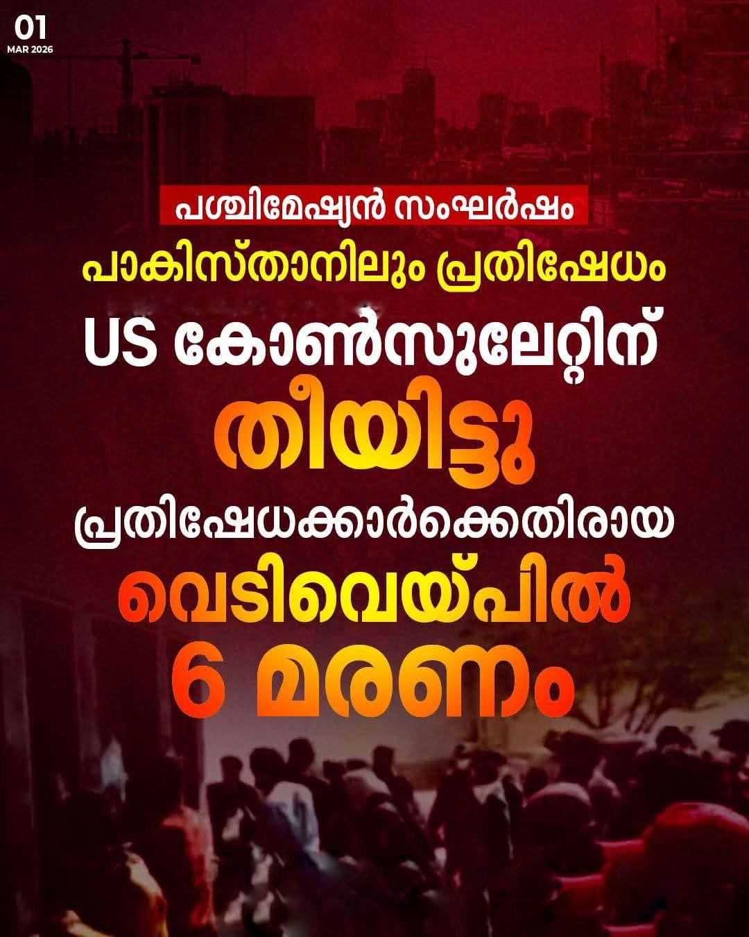 കറാച്ചിയിലെ യുഎസ് കോൺസുലേറ്റിന് നേരെ പ്രതിഷേധക്കാർ നടത്തിയ ആക്രമണത്തിന്റെ ദൃശ്യങ്ങൾ പുറത്തുവന്നു. കോൺസുലേറ്റ് തകർക്കുകയും തീയിടുകയും ചെയ്ത ജനക്കൂട്ടത്തിന് നേരെ നടന്ന വെടിവെയ്പിൽ ആറ് പേർ കൊല്ലപ്പെട്ടു.
