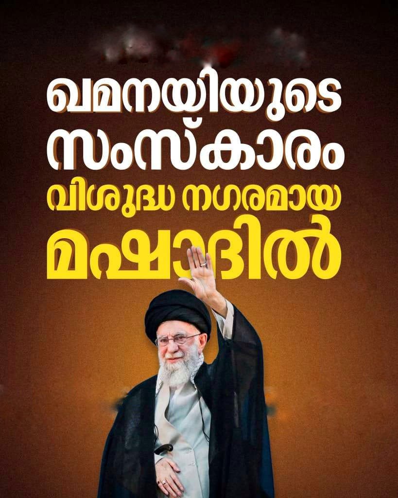 ഇസ്രയേൽ-അമേരിക്കൻ ആക്രമണത്തിൽ കൊല്ലപ്പെട്ട ഇറാൻ പരമോന്നത നേതാവ് ആയത്തുള്ള അലി ഖമനയിയുടെ സംസ്കാരം അദ്ദേഹത്തിന്റെ ജന്മനാടായ മഷാദിൽ നടക്കുമെന്ന് റിപ്പോർട്ട്. ഷിയാ മുസ്ലിംകളുടെ വിശുദ്ധ നഗരമായ ഇവിടെയുള്ള ഇമാം റെസ പള്ളിയിലായിരിക്കും ചടങ്ങുകൾ. ഖമനയിയുടെ പിതാവിനെ സംസ്കരിച്ചതും ഇവിടെയാണ്.