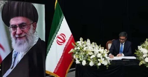 ആയത്തുല്ല ഖാംനഇയുടെ കൊലപാതകത്തിൽ കേന്ദ്ര സർക്കാരിനെ പ്രതിനിധീകരിച്ച് വിദേശകാര്യ സെക്രട്ടറി വിക്രം മിസ്രി അനുശോചനം രേഖപ്പെടുത്തി. വ്യാഴാഴ്ച ഡൽഹിയിലെ ഇറാൻ എംബസിയിലെത്തിയ അദ്ദേഹം അനുശോചന പുസ്തകത്തിൽ ഒപ്പിട്ടു.