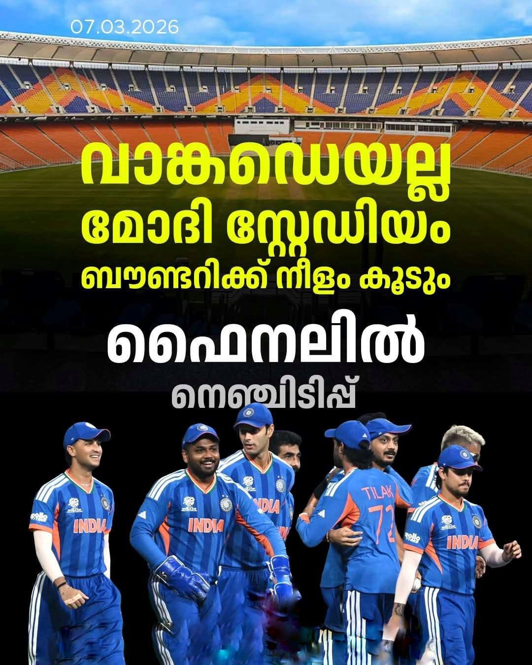 ഈഡൻ ഗാർഡൻസും വാങ്കഡെയും ആവേശമാണെങ്കിൽ, അഹമ്മദാബാദ് സ്റ്റേഡിയം ഇന്ത്യൻ ആരാധകർക്ക് ഇപ്പോഴും ഒരു നെഞ്ചിടിപ്പാണ്. 2023 ലോകകപ്പ് ഫൈനലിൽ അജയ്യരായി മുന്നേറിയിട്ടും ഇതേ മൈതാനത്ത് ഓസ്ട്രേലിയയോട് ഏറ്റ തോൽവി നാളെ ന്യൂസീലൻഡിനെ നേരിടുമ്പോൾ ആരാധകരുടെ ഉള്ളിൽ ആശങ്കയുണർത്തുന്നു.