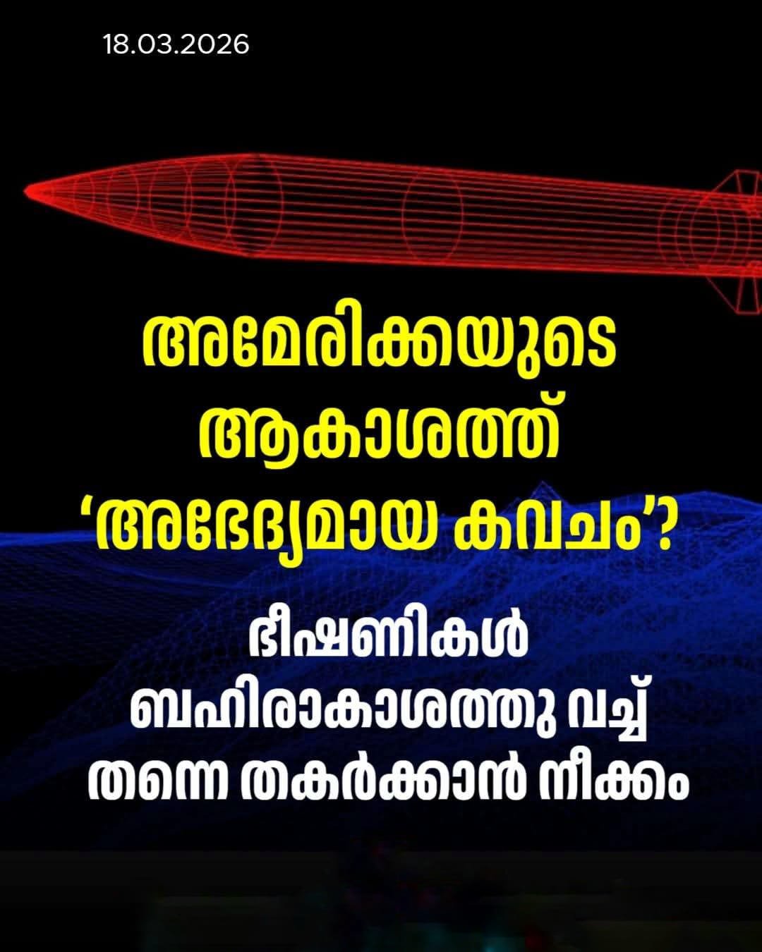 ബഹിരാകാശ സെൻസറുകൾ, സാറ്റലൈറ്റ് ശൃംഖലകൾ, മിസൈലുകളെ പാതിവഴിയിൽ തകർക്കുന്ന ഇന്റർസെപ്റ്ററുകൾ എന്നിവ സംയോജിപ്പിച്ചാണ് ഈ ‘അഭേദ്യ കവചം’ ഒരുക്കുന്നത്.അമേരിക്കൻ മണ്ണിലേക്കുള്ള ഏതൊരു വ്യോമാക്രമണത്തെയും തടയാൻ പ്രസിഡന്റ് ഡോണൾഡ് ട്രംപിന്റെ നേതൃത്വത്തിൽ ഒരുക്കുന്ന ഈ ‘അഭേദ്യ കവചം’ വരും വർഷങ്ങളിൽ കൂടുതൽ നൂതനമാകും.