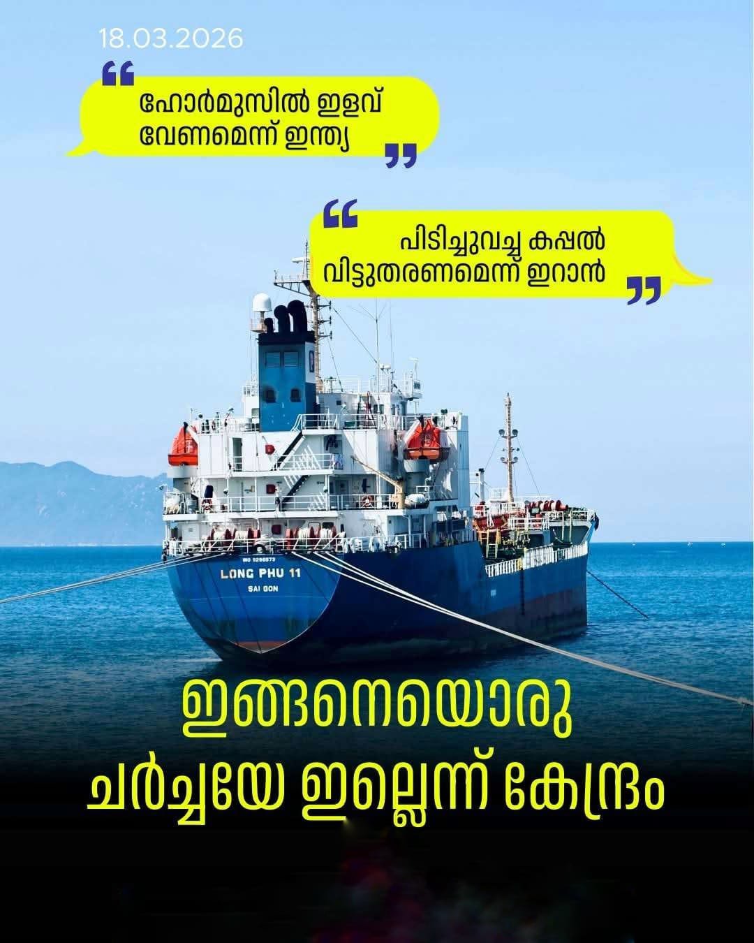 ഹോർമുസ് കടലിടുക്കിലൂടെ കൂടുതൽ ഇന്ത്യൻ കപ്പലുകൾക്ക് യാത്രാനുമതി നൽകാൻ പകരമായി, ഇന്ത്യ പിടിച്ചെടുത്ത മൂന്ന് കപ്പലുകൾ വിട്ടുനൽകണമെന്ന് ഇറാൻ ആവശ്യപ്പെട്ടതായി വിദേശ മാധ്യമങ്ങൾ റിപ്പോർട്ട് ചെയ്യുന്നു. എന്നാൽ ഇന്ത്യയോ ഇറാനോ ഔദ്യോഗികമായി ഇത് സ്ഥിരീകരിച്ചിട്ടില്ല.