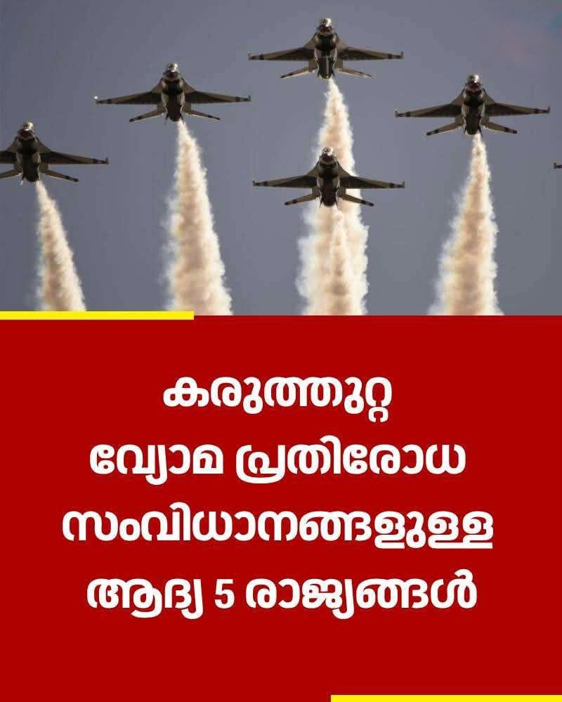 2 ഇസ്രായേൽ (അയേൺ ഡോം & ആരോ): ഹ്രസ്വദൂര റോക്കറ്റുകളെ തകർക്കുന്നതിൽ 90 ശതമാനത്തിലധികം വിജയം കൈവരിച്ച അയേൺ ഡോം ലോകപ്രശസ്തമാണ്. ഇതിനു പുറമെ ദീർഘദൂര ഭീഷണികൾ നേരിടാൻ ‘ആരോ’ (Arrow) സംവിധാനവും ഇസ്രായേലിനുണ്ട്.