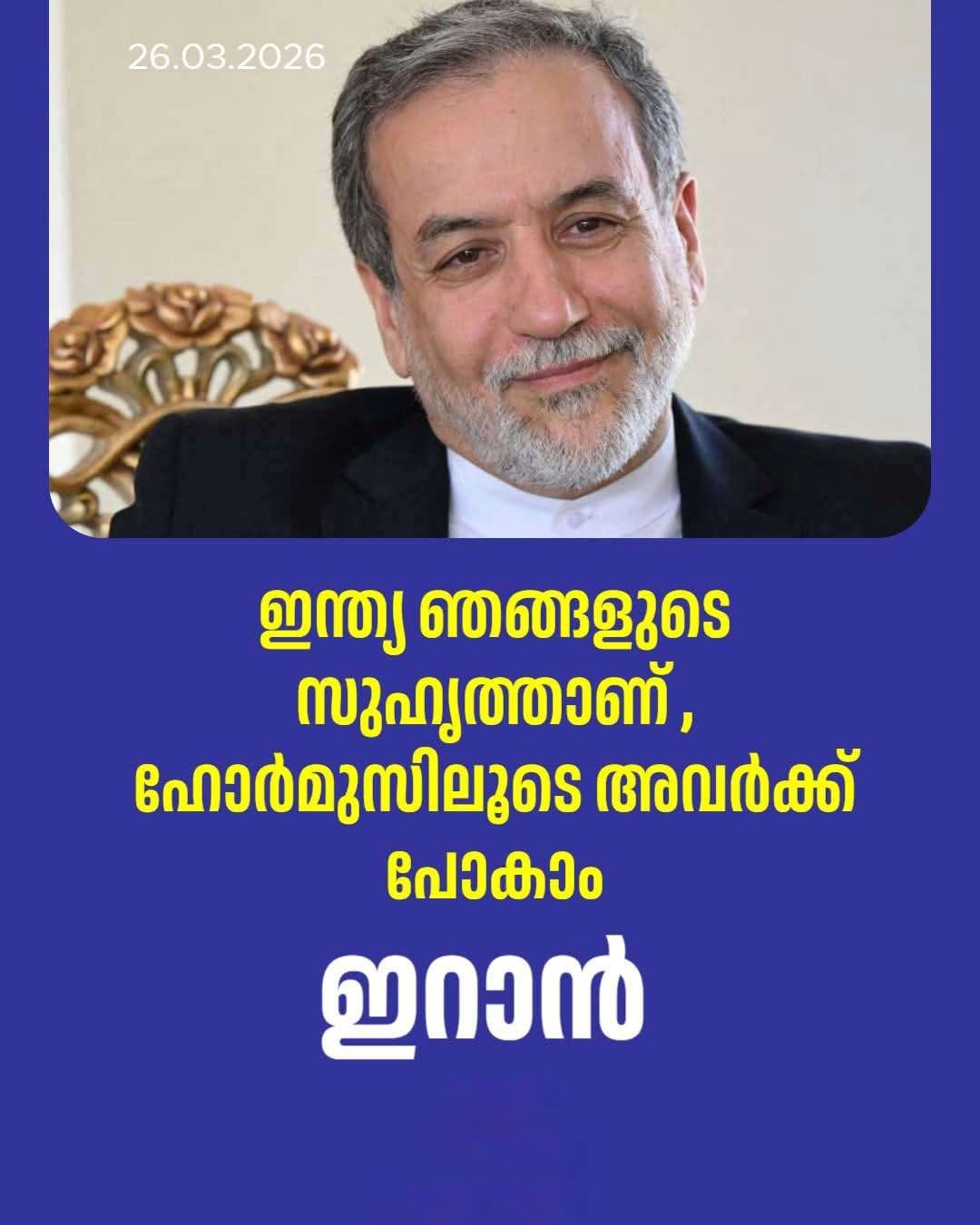 ഹോർമുസ് കടലിടുക്ക് പൂർണ്ണമായും അടച്ചിട്ടില്ലെന്നും ഇന്ത്യയുൾപ്പെടെ അഞ്ച് സൗഹൃദ രാജ്യങ്ങൾക്ക് സുരക്ഷിത പാത ഉറപ്പാക്കിയിട്ടുണ്ടെന്നും ഇറാൻ വിദേശകാര്യ മന്ത്രി അബ്ബാസ് അരാഗ്ചി വ്യക്തമാക്കി.