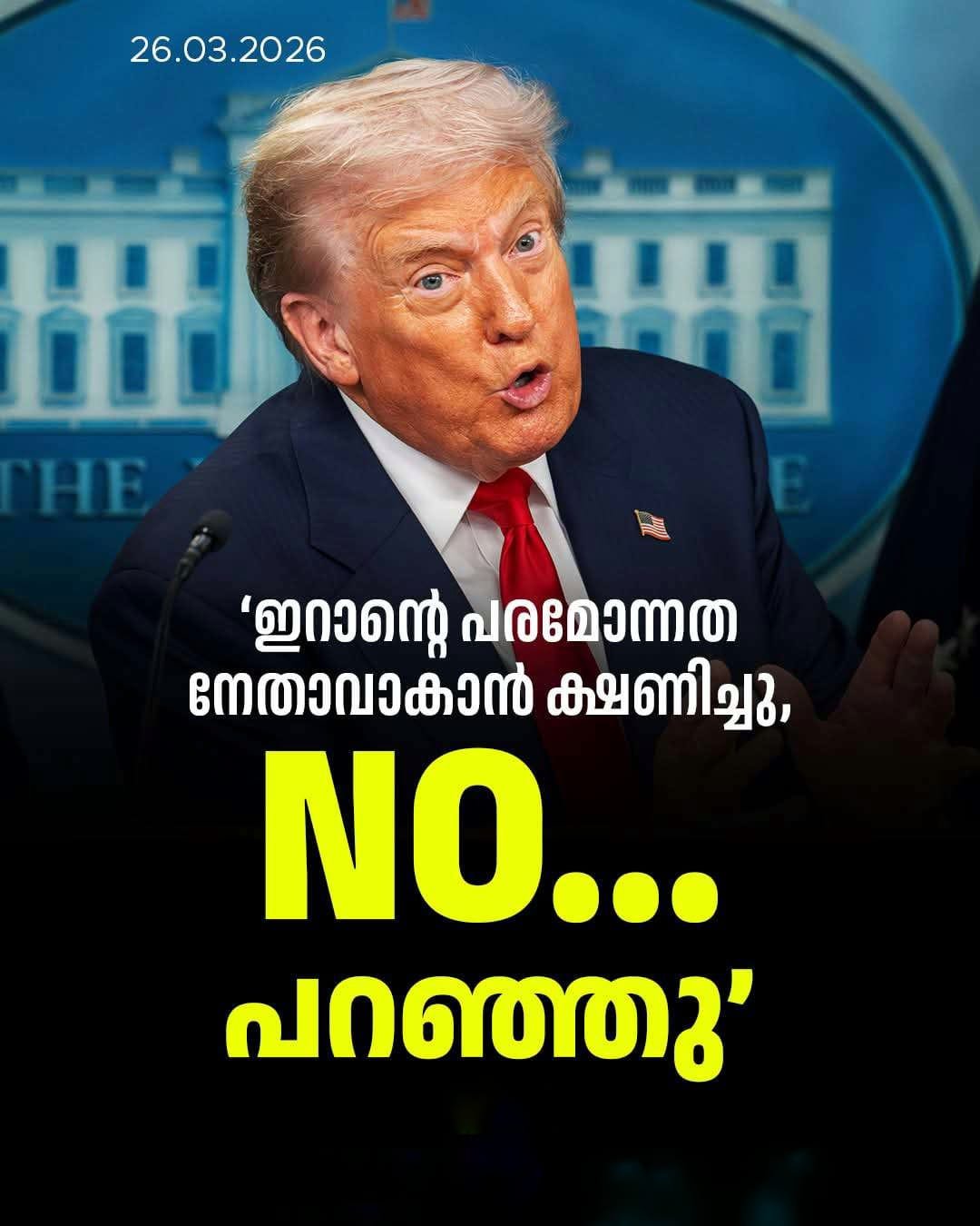 ഇറാന്റെ പരമോന്നത നേതാവ് അലി ഖമേനിയുടെ പിൻഗാമിയായി മകൻ മുജ്തബ ഖമേനിയെ നിശ്ചയിച്ചതായുള്ള വാർത്തകൾക്കിടെയാണ് ട്രംപിന്റെ ഈ പരാമർശം.യുഎസ്-ഇസ്രയേൽ സംയുക്ത വ്യോമാക്രമണത്തിൽ ഇറാന്റെ പരമോന്നത നേതാവ് ആയത്തുല്ല അലി ഖമനയി (86) കൊല്ലപ്പെട്ടതിനെത്തുടർന്ന് രാജ്യം വലിയ രാഷ്ട്രീയ അനിശ്ചിതത്വത്തിലാണ്.