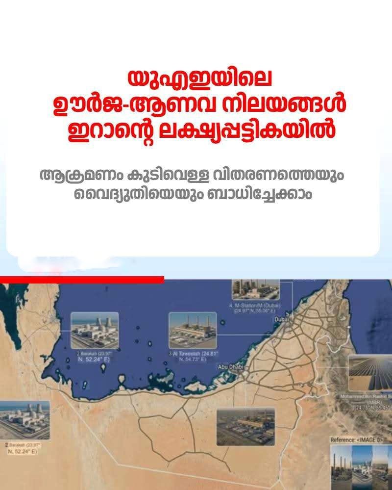 അമേരിക്കൻ സൈന്യം ഇറാന്റെ മണ്ണിൽ പ്രവേശിച്ചാൽ യുഎഇയിലെ പ്രധാന ഊർജ്ജ-അടിസ്ഥാന സൗകര്യങ്ങൾ ആക്രമിക്കുമെന്ന് ഇറാൻ മുന്നറിയിപ്പ് നൽകി. ഇതിനായി യുഎഇയിലെ നിർണ്ണായക കേന്ദ്രങ്ങളുടെ പട്ടിക ഇറാൻ പുറത്തുവിട്ടു.
