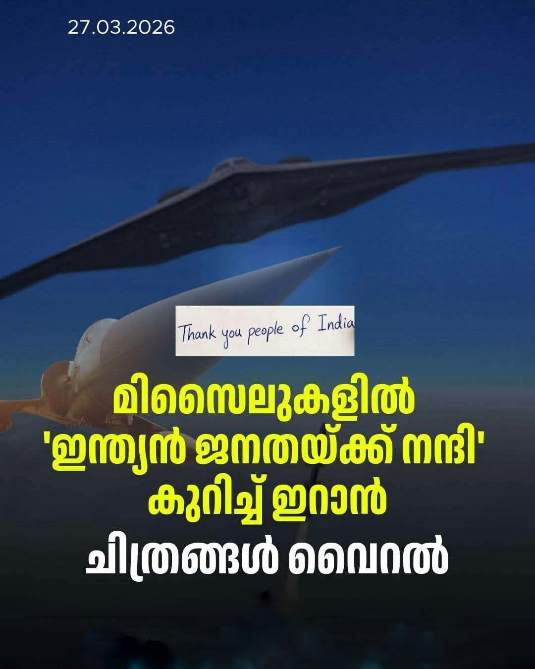 ഇന്ത്യയ്ക്ക് പുറമെ പാക്കിസ്ഥാൻ, സ്പെയിൻ, ജർമ്മനി എന്നീ രാജ്യങ്ങൾക്കും മിസൈലുകളിൽ നന്ദി രേഖപ്പെടുത്തിയിട്ടുണ്ട്. യുഎസ്-ഇസ്രയേൽ സംയുക്ത നീക്കമായ ‘ഓപ്പറേഷൻ എപിക് ഫ്യൂറി’തുടരുന്നതിനിടെയാണ് ഇസ്രയേലിന് നേരെയുള്ള ആക്രമണം ഇറാൻ ശക്തമാക്കിയത്.