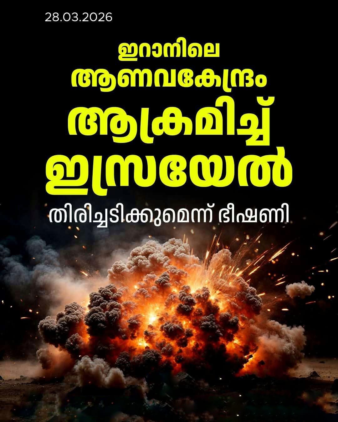 ഇതിനിടെ മധ്യ ഇറാനിലെ യുറേനിയം പ്ലാന്റിൽ ഇസ്രയേൽ ബോംബാക്രമണം നടത്തി. ഇതിന് തിരിച്ചടിയായി യുഎസ്–ഇസ്രയേൽ സഖ്യരാജ്യങ്ങളെ ആക്രമിക്കുമെന്ന് ഇറാൻ ഭീഷണി മുഴക്കി.