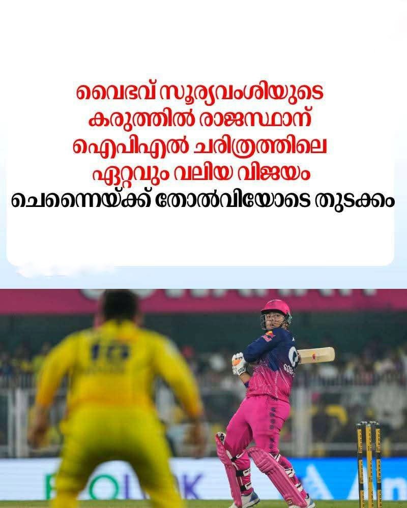 അച്ചടക്കമുള്ള ബൗളിംഗിലൂടെയും വൈഭവ് സൂര്യവംശിയുടെ ബാറ്റിംഗ് മികവിലൂടെയും ചെന്നൈ സൂപ്പർ കിംഗ്സിനെ 8 വിക്കറ്റിന് തകർത്ത് രാജസ്ഥാൻ റോയൽസ് ഐപിഎൽ സീസൺ തുടങ്ങി. ചെന്നൈയുടെ 128 റൺസ് ലക്ഷ്യം 47 പന്തുകൾ ബാക്കിനിൽക്കെ റോയൽസ് മറികടന്നു. പന്തുകളുടെ എണ്ണത്തിൽ രാജസ്ഥാൻ ചരിത്രത്തിലെ ഏറ്റവും വലിയ വിജയമാണിത്.