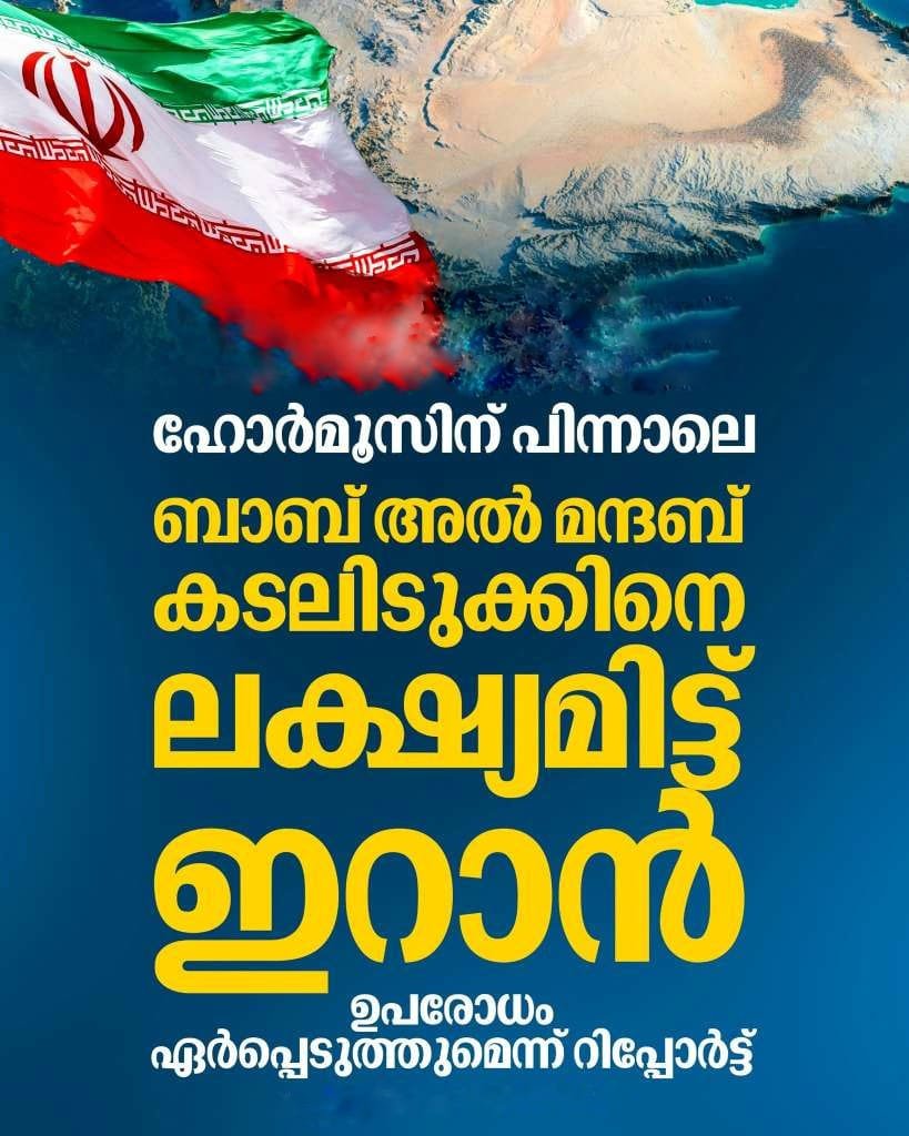 പശ്ചിമേഷ്യയിൽ സംഘർഷം കടുക്കുന്നതിനിടെ, ഹോർമൂസ് കടലിടുക്കിന് പിന്നാലെ ബാബ് അൽ മന്ദബ് ജലപാതയും അടയ്ക്കുമെന്ന സൂചനയുമായി ഇറാൻ രംഗത്തെത്തി. തന്ത്രപ്രധാനമായ ഈ മേഖലയിൽ ഉപരോധം ഏർപ്പെടുത്തുന്നത് സംബന്ധിച്ച് ഇറാൻ പാർലമെന്റ് സ്പീക്കറാണ് സൂചന നൽകിയത്.