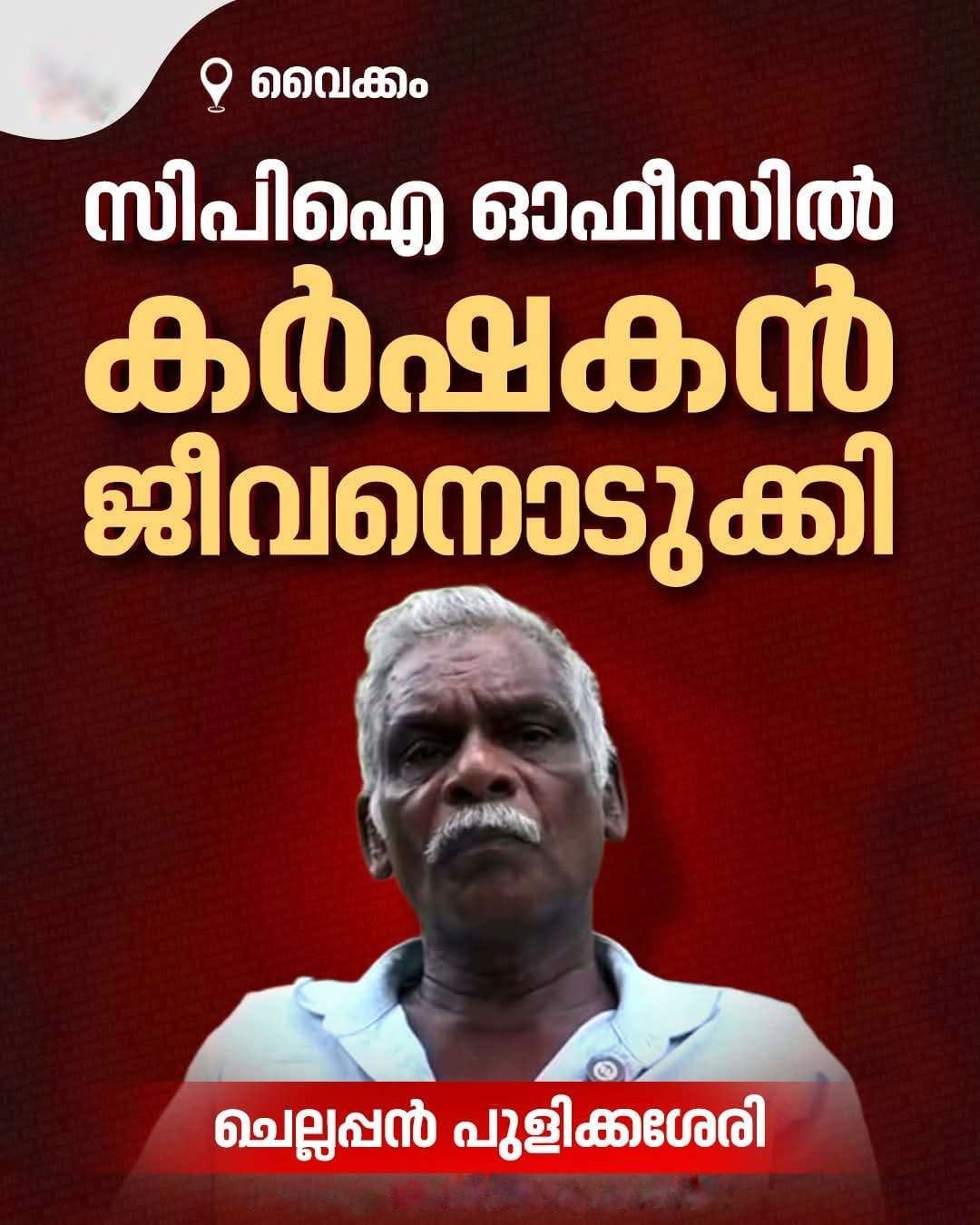 വൈക്കം തലയാഴം സിപിഐ ഓഫീസിൽ കർഷകനായ ചെല്ലപ്പനെ തൂങ്ങിമരിച്ച നിലയിൽ കണ്ടെത്തി. സിപിഐ നേതാക്കൾ തന്റെ കൃഷി നശിപ്പിച്ചെന്നും, കൃഷിമന്ത്രി പി. പ്രസാദിനെ കാണാൻ പലതവണ ശ്രമിച്ചിട്ടും അനുമതി ലഭിച്ചില്ലെന്നും മരിക്കുന്നതിന് മുൻപ് പുറത്തുവിട്ട വീഡിയോയിൽ അദ്ദേഹം ആരോപിച്ചു.