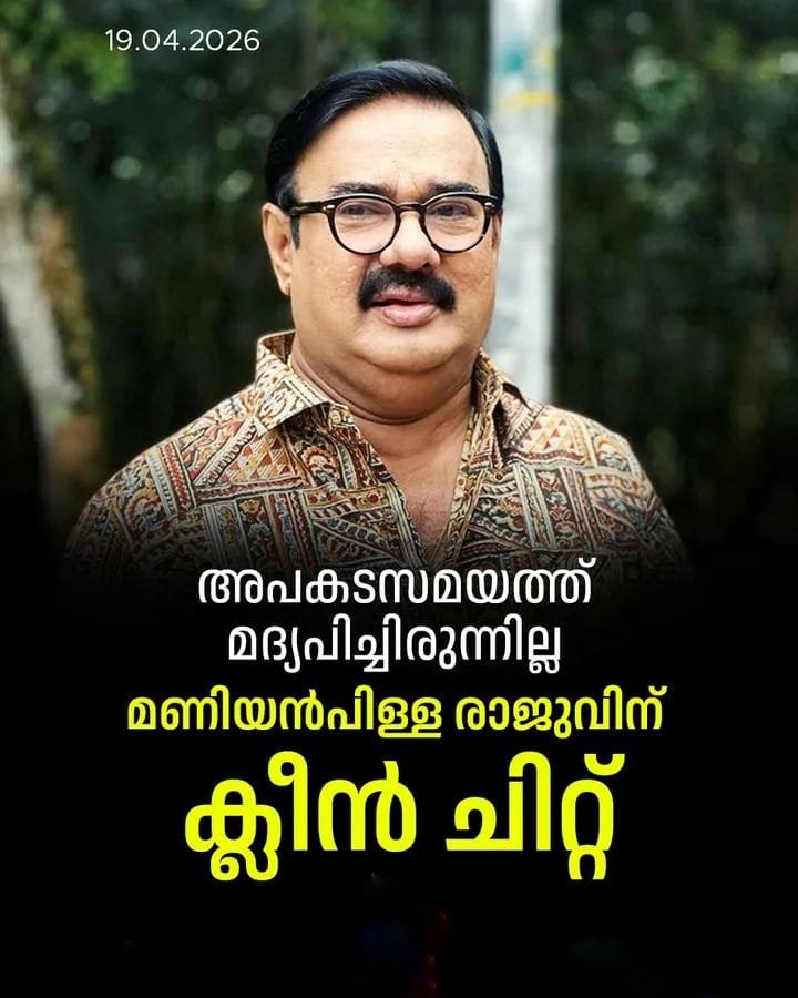 തിരുവനന്തപുരം ട്രിവാൻഡ്രം ക്ലബ്ബിന് മുന്നിലുണ്ടായ വാഹനാപകടത്തിൽ മണിയൻപിള്ള രാജു മദ്യപിച്ചിരുന്നില്ലെന്ന് കെമിക്കൽ പരിശോധനാ റിപ്പോർട്ട്. ഇതോടെ താരത്തിനെതിരെയുള്ള മദ്യപിച്ച് വാഹനമോടിച്ചെന്ന കുറ്റം കോടതി ഒഴിവാക്കി. താൻ 2022-ൽ മദ്യപാനം ഉപേക്ഷിച്ചതാണെന്നും സത്യം പുറത്തുവന്നതിൽ സന്തോഷമുണ്ടെന്നും അദ്ദേഹം പ്രതികരിച്ചു.