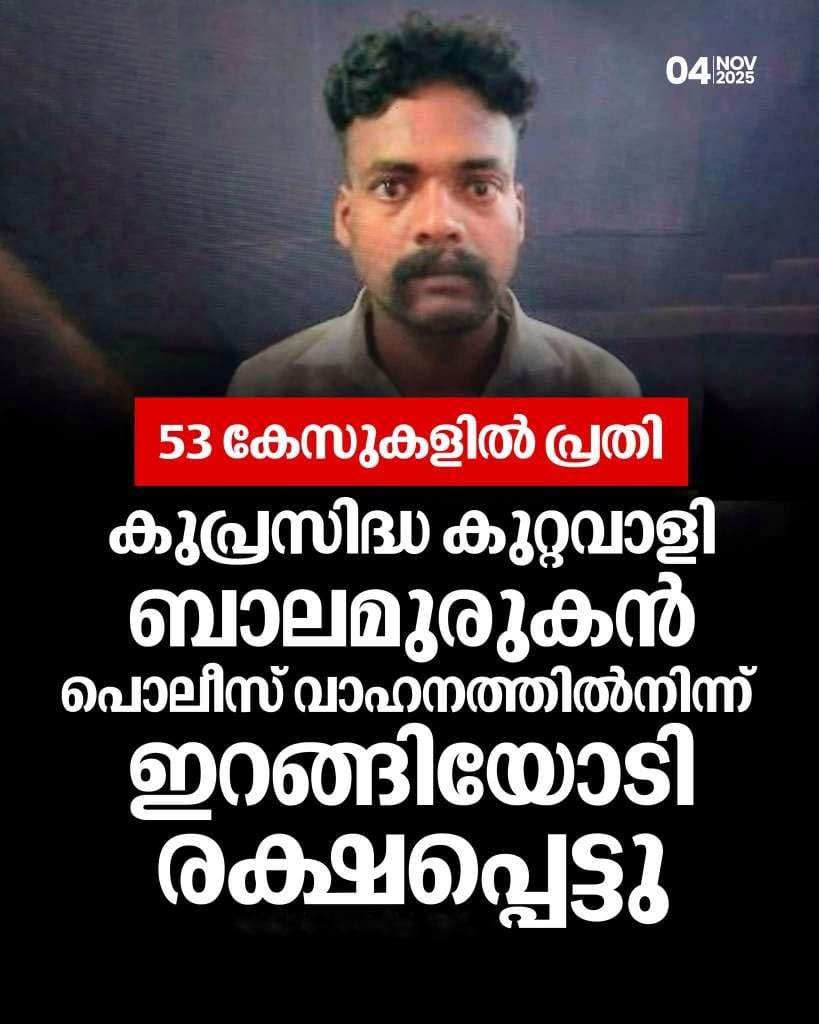53 കേസുകളിൽ പ്രതി തൃശൂരിൽ കുപ്രസിദ്ധ മോഷ്ടാവ് തമിഴ്‌നാട് പൊലീസിന്റെ കസ്റ്റഡിയിൽ നിന്ന് രക്ഷപ്പെട്ടു