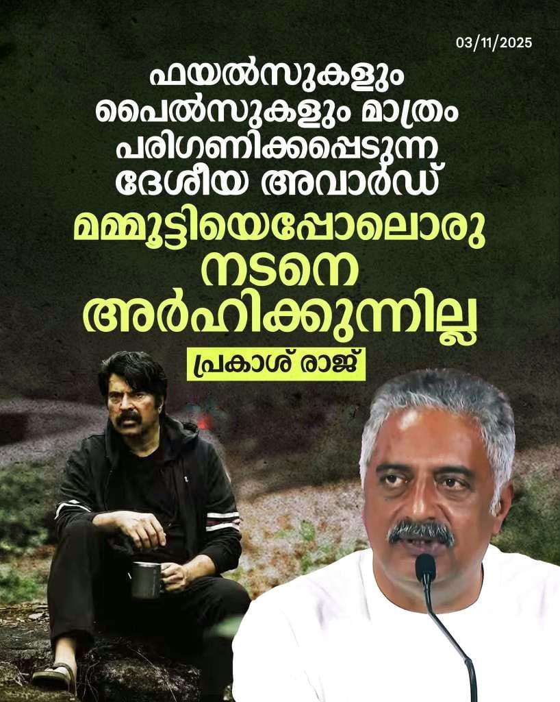 ദേശീയ അവാര്ഡ് മമ്മൂട്ടിയെപ്പോലൊരു നടനെ അര്ഹിക്കുന്നില്ല പ്രകാശ് രാജ്