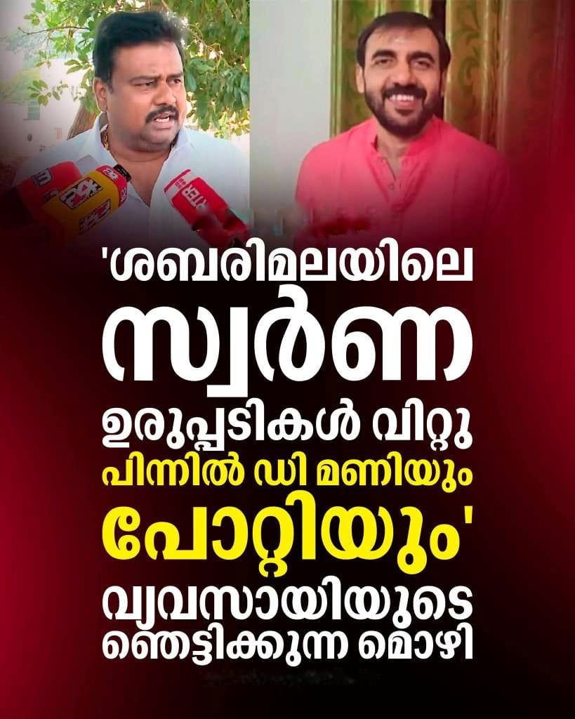 ശബരിമലയിലെ സ്വർണ ഉരുപ്പടികൾ വിറ്റു പിന്നില് ഡി മണിയും പോറ്റിയും