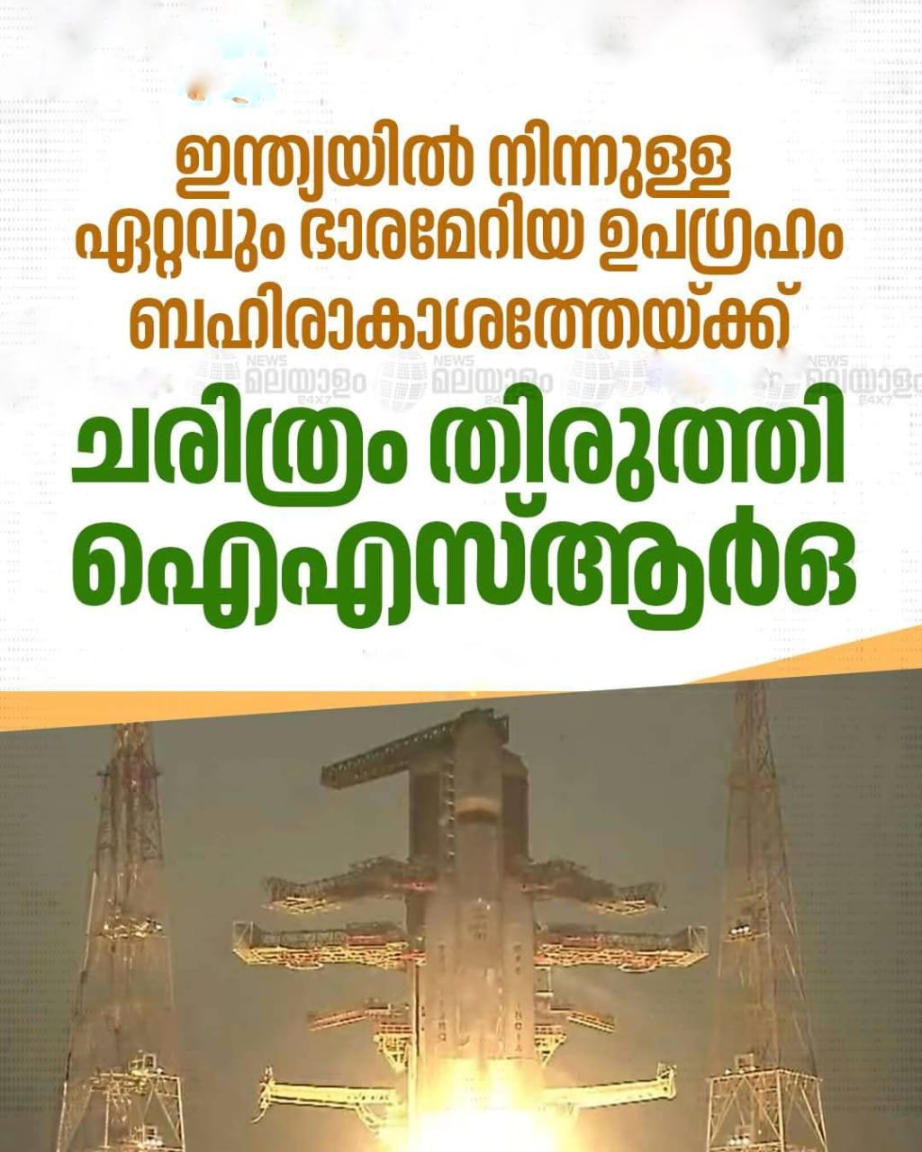 സിഎംഎസ്-03 വിക്ഷേപണം വിജയകരം ചരിത്രം തിരുത്തി ഐഎസ്ആർഒ