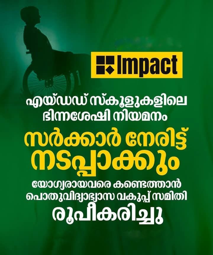 സംസ്ഥാനത്തെ എയ്ഡഡ് സ്കൂൾ ഭിന്നശേഷി നിയമനം സർക്കാർ നേരിട്ട് നടപ്പാക്കും