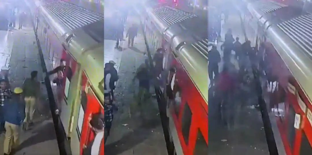 മക്കളെ കാത്തുനിൽക്കവേ അപകടം ഓടിത്തുടങ്ങിയ ട്രെയിനിൽ നിന്ന് വീണു, യുവതിയെ ഞൊടിയിടയിൽ രക്ഷപ്പെടുത്തി പൊലീസ്