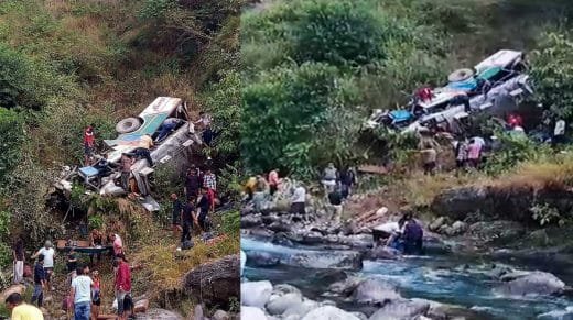 മലയിടുക്കിലേക്ക് ബസ് മറിഞ്ഞു 20 മരണം ആളുകള് കുടുങ്ങിക്കിടക്കുന്നു