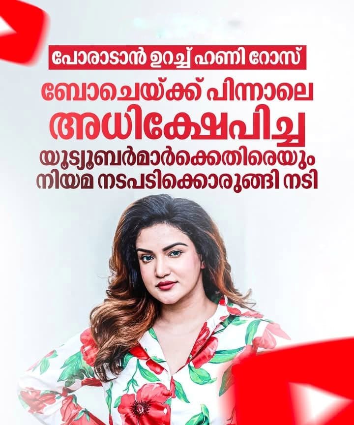 അധിക്ഷേപിച്ച യൂട്യൂബർമാർക്കെതിരെയും നിയമനടപടിക്കൊരുങ്ങി ഹണി റോസ്