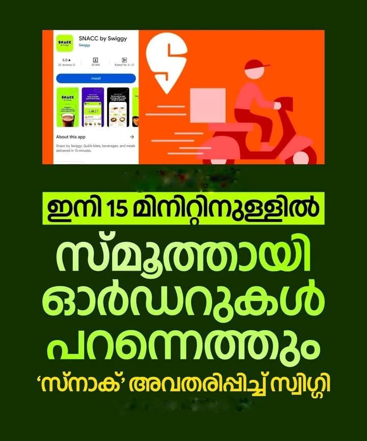 സ്നാക് എന്നപേരില് സ്വതന്ത്ര ആപ്പായിട്ടാകും സ്വിഗ്ഗി ഈ പ്ലാറ്റ്ഫോമിനെ അവതരിപ്പിക്കുക